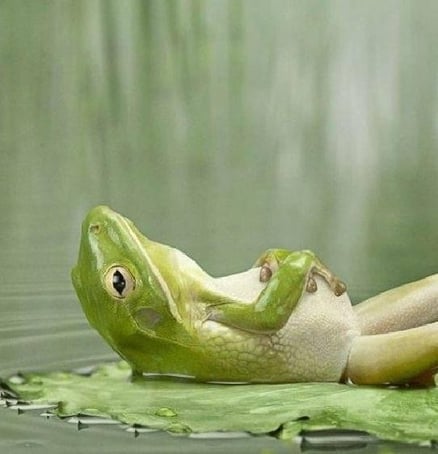 蛙は、瞬時にかなり高く飛び上がり、呼吸と一緒に体を膨らませられる。